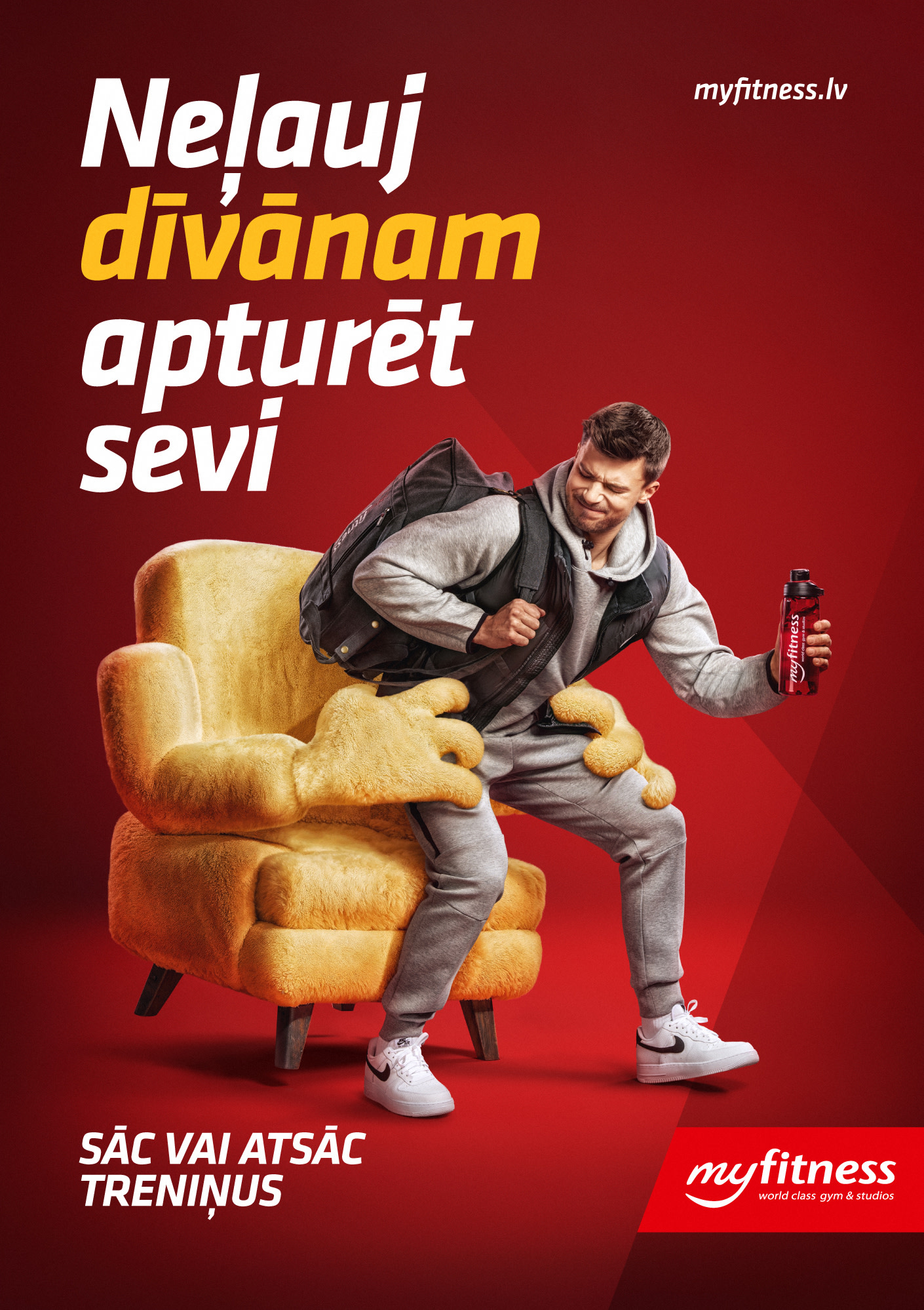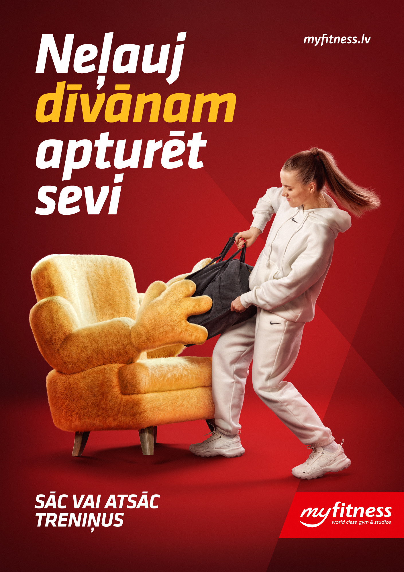Lai palīdzētu sportot gribētājiem nezaudēt motivāciju, mēs radījām kampaņu, kurā identificējām galveno vaininieku, kas ar viltu, pulti un čipsu bļodu ievilina savos apskāvienos un neļauj iet uz treniņu.